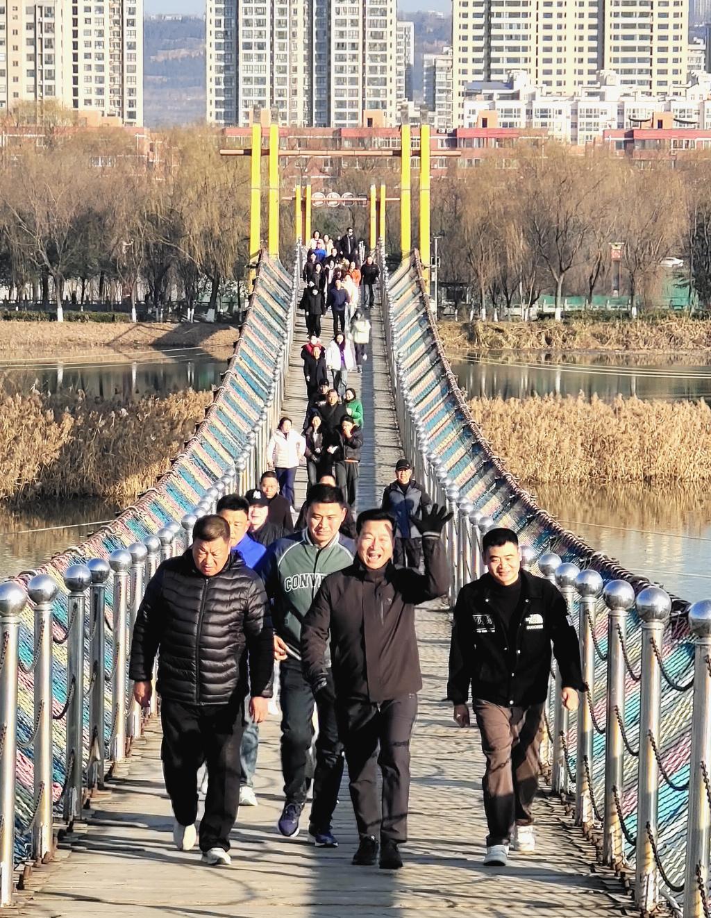 冬日里,雖寒風(fēng)微凜,但抵擋不住職工們的熱情。隨著出發(fā)指令的響起,健步行活動(dòng)正式拉開(kāi)帷幕。職工們精神抖擻、步伐堅(jiān)定,沿著既定路線有序前行。冬日暖陽(yáng)映照碧波,渭水兩岸生機(jī)盎然。一路上,大家歡聲笑語(yǔ),或三五結(jié)伴,相互鼓勵(lì),暢談工作生活趣事;或獨(dú)步當(dāng)先,挑戰(zhàn)自我。既有年輕職工沖鋒在前的活力,也有老員工堅(jiān)持不懈的執(zhí)著,更有團(tuán)隊(duì)間相互鼓勁的溫暖。歡聲笑語(yǔ)與矯健步伐交織,在近7公里的步行道上形成了一道亮麗的流動(dòng)風(fēng)景線,展現(xiàn)了公司員工不懼難不畏險(xiǎn)、敢擔(dān)當(dāng)善作為的精神風(fēng)貌。